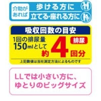 介助があれば歩ける方、介助があれば立てる・座れる方に。 吸収目安は約4回分。 LLサイズでは小さい方に、ゆとりの3Lサイズ