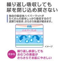 独自の吸収体ハイパーマットが、たくさんの尿をしっかり吸収・閉じ込めるので、逆戻りがなくサラサラ快適。