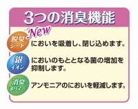 銀イオン、脱臭シート、消臭ポリマーのトリプル効果でにおいも安心!